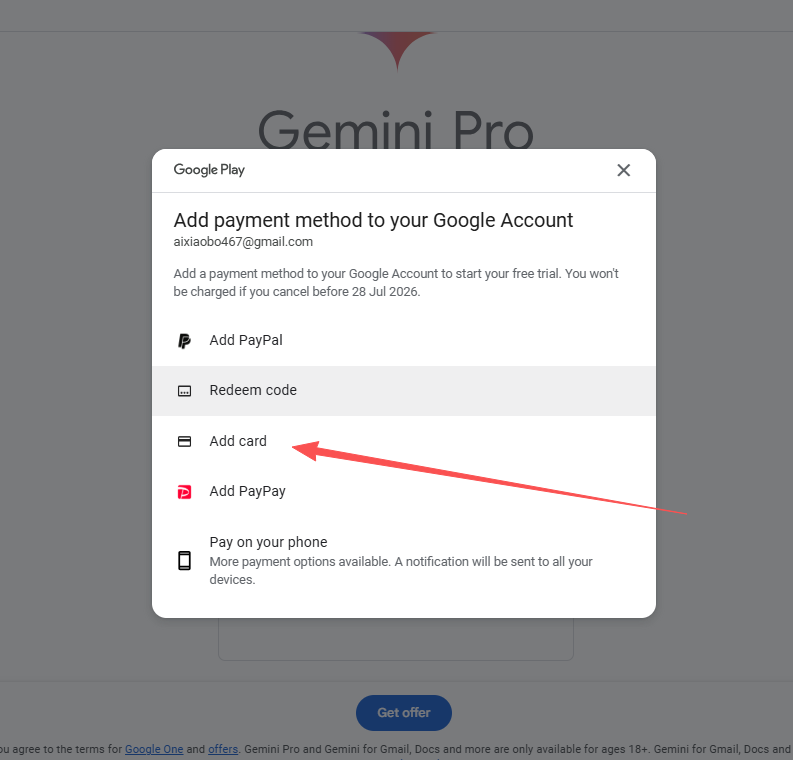 3️⃣ 接着会进入支付方式的添加页面,我们点击 【添加卡片 (Add card)】。