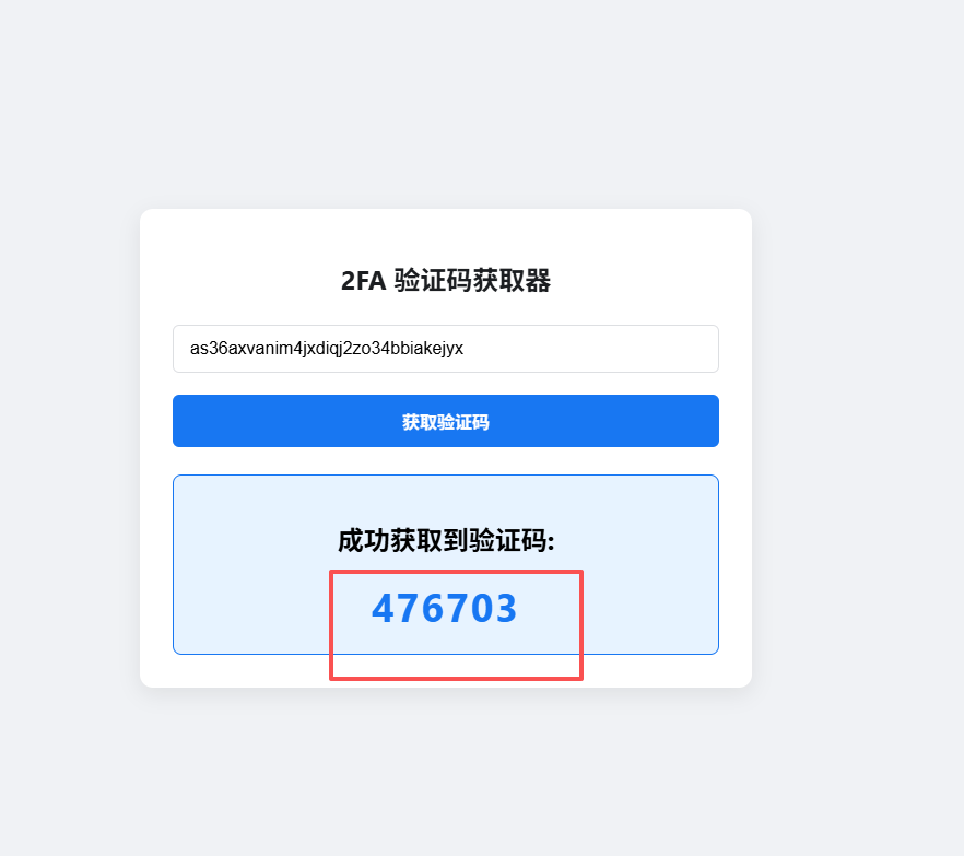 添加成功之后,打开网址即可看到谷歌身份验证器的六位验证码。 后续登录如果需要验证的话,就打开自己修改后的网址,即可获取;另外验证码有效期只有30秒,如果过期的话,请点击蓝色按钮,重新获取即可。