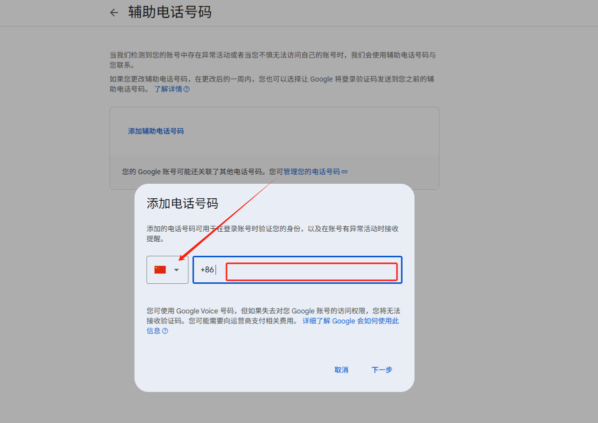 - 先把辅助邮箱和辅助手机号给填了,手机号可以填中国的。