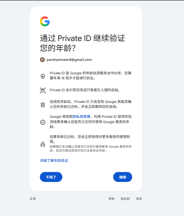- 📱 打开直达链接(最好使用手机操作):https://myaccount.google.com/age-verification?hl=zh-CN&utm_source=p0