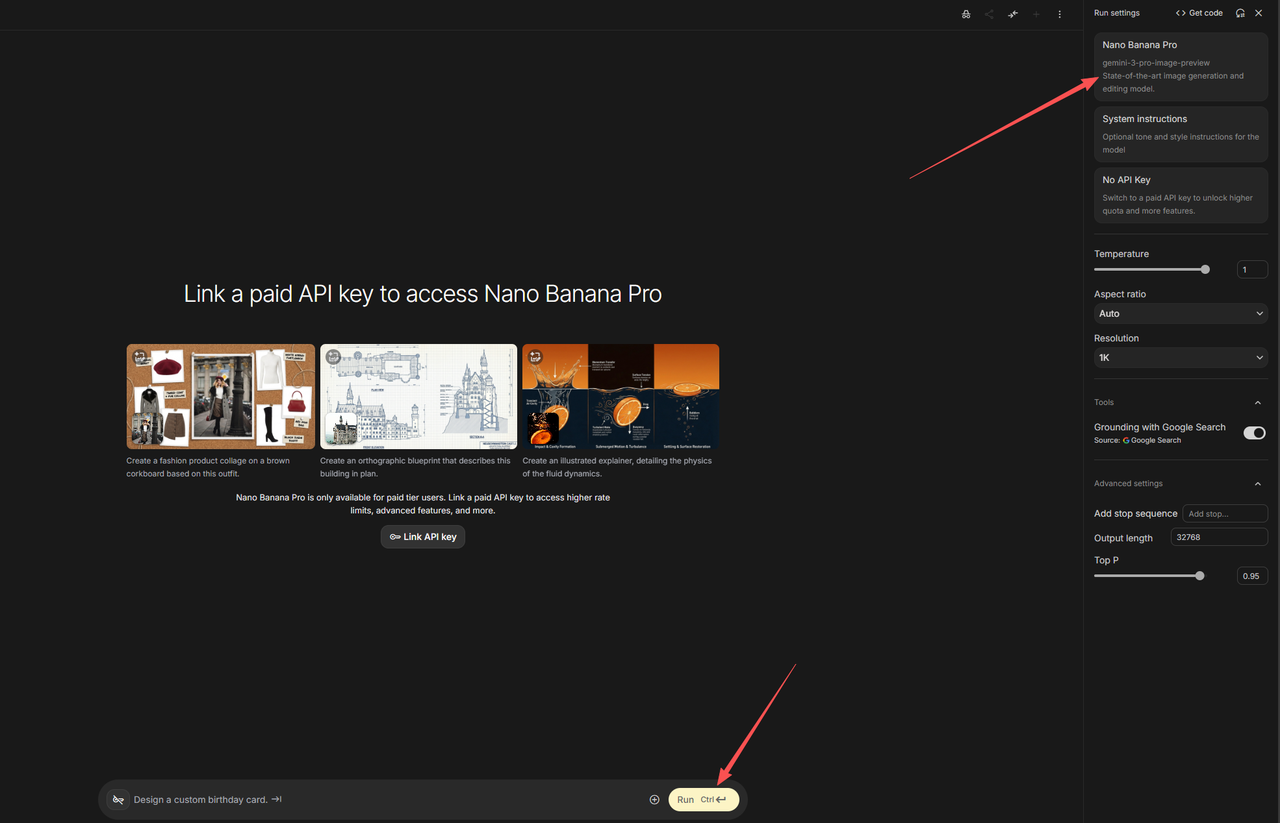 一般上方的入口,基本能满足绝大多数小伙伴的需求。现在想要通过 Nanobanana 生成 4K 素材,只有通过 API 接口才行。
