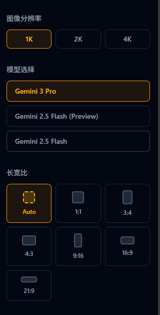 平台支持不同分辨率输出(4K / 2K / 1K),同时支持多尺寸比例输出,满足你的全部排版与设计需求。
