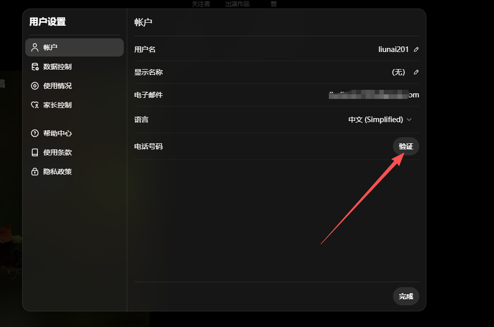 1️⃣ 第一步:进入验证界面 登录上sora之后,点击【设置】,然后点击验证,然后就会出现号码验证的界面。
