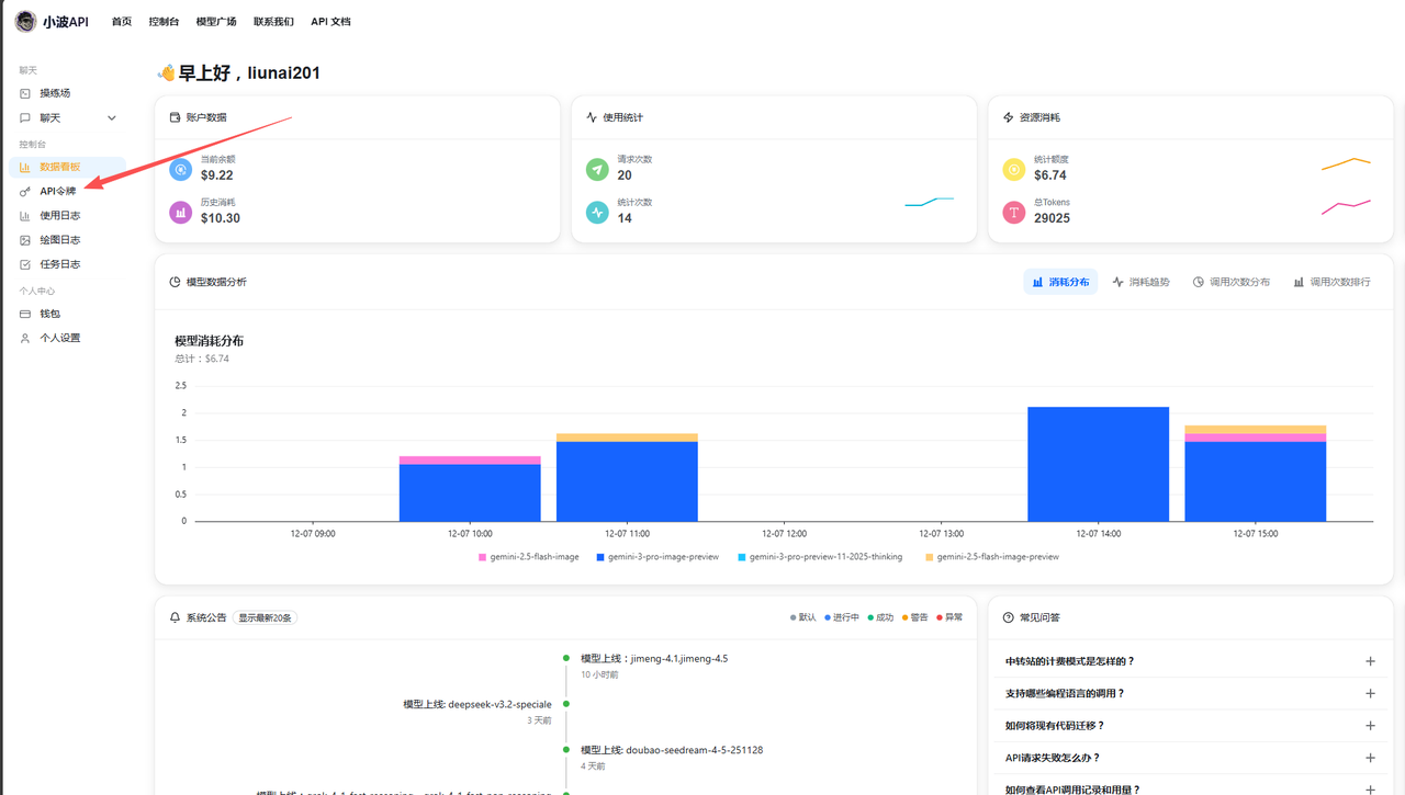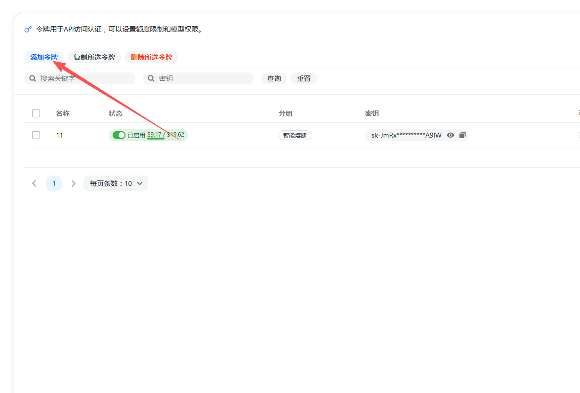 - 开始使用:充值完成后,即可复制令牌密钥,前往站点使用。